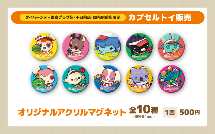 Capsule toys with “original magnets” and other collaboration goods will be sold exclusively at some stores. In addition to in-store sales, the collaboration goods will also be available for pre-order via the ROUND1 app.