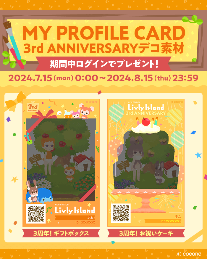 All owners who log in during the period will receive My Profile Card deco materials to commemorate the 3rd anniversary.